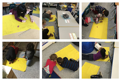 In 1st grade students are leaning about cardinal directions through mapping their classroom!